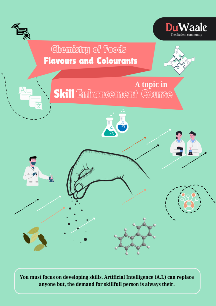 The subject develops understanding of areas such as 𝐜𝐡𝐞𝐦𝐢𝐜𝐚𝐥 𝐜𝐨𝐦𝐩𝐨𝐬𝐢𝐭𝐢𝐨𝐧 𝐨𝐟 𝐟𝐥𝐚𝐯𝐨𝐮𝐫𝐬, 𝐧𝐚𝐭𝐮𝐫𝐚𝐥 𝐚𝐧𝐝 𝐬𝐲𝐧𝐭𝐡𝐞𝐭𝐢𝐜 𝐜𝐨𝐥𝐨𝐮𝐫𝐚𝐧𝐭𝐬, 𝐟𝐥𝐚𝐯𝐨𝐮𝐫 𝐞𝐧𝐡𝐚𝐧𝐜𝐞𝐫𝐬, 𝐩𝐢𝐠𝐦𝐞𝐧𝐭𝐬, 𝐫𝐞𝐚𝐜𝐭𝐢𝐨𝐧𝐬 𝐚𝐟𝐟𝐞𝐜𝐭𝐢𝐧𝐠 𝐜𝐨𝐥𝐨𝐮𝐫, 𝐬𝐭𝐚𝐛𝐢𝐥𝐢𝐭𝐲 𝐚𝐧𝐝 𝐬𝐭𝐨𝐫𝐚𝐠𝐞, and 𝐟𝐨𝐨𝐝 𝐬𝐚𝐟𝐞𝐭𝐲 𝐫𝐞𝐠𝐮𝐥𝐚𝐭𝐢𝐨𝐧𝐬, with emphasis on quality, consistency, and consumer acceptance. Practical examples illustrate how chemistry influences flavour development and visual appeal in processed foods.